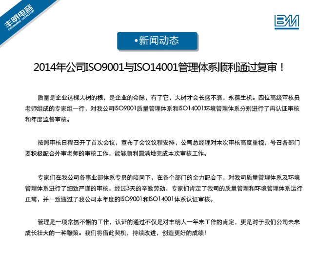 2014年公司ISO9001與ISO14001管理體系順利通過復(fù)審!