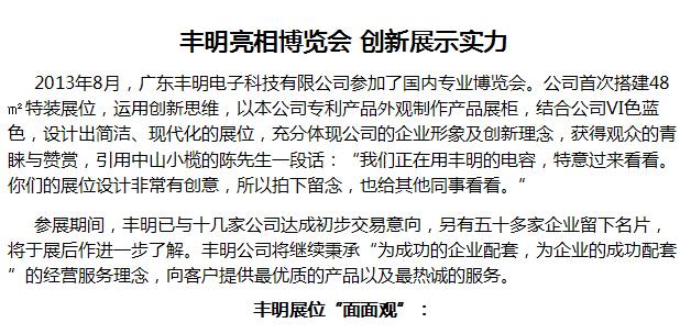 豐明亮相博覽會(huì),創(chuàng)新展示實(shí)力“為成功的企業(yè)配套,為企業(yè)的成功配套”
